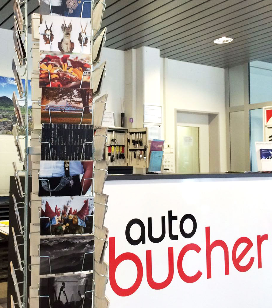 In diesem Ramen sind auch seine Postkarten zu kaufen. Zuerst an der Fotoausstellung am SA / SO 24./25. September von 10 bis 16 Uhr, danach während den regulären Öffnungszeiten von Auto Bucher.